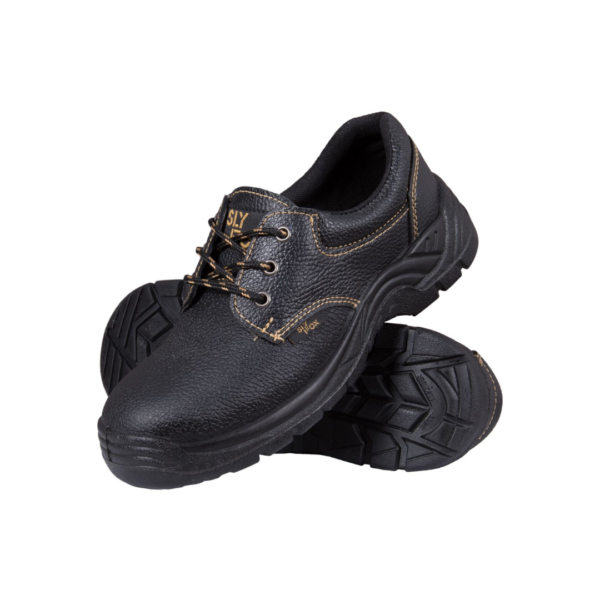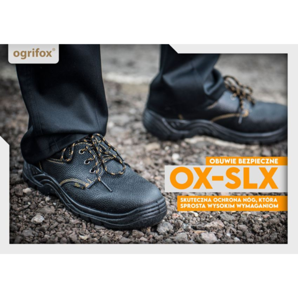 Całoroczne bezpieczne, sznurowane buty robocze typu półbut, sięgające przed kostkę, wykonane ze skóry bydlęcej.
