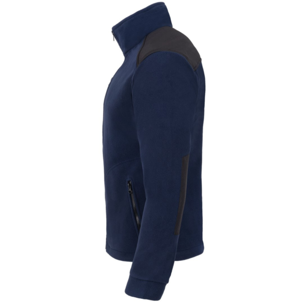 Polar jest gruby i posiada bardzo dobre właściwości cieplne, przyjemny w dotyku, 2 kieszenie zasuwane zamkami błyskawicznymi oraz dodatkowa kieszeń na piersi z zamkiem.