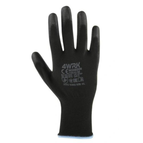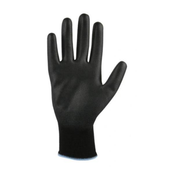 - Rękawice poliestrowe w kolorze czarnym, powlekane warstwą czarnego poliuretanu.