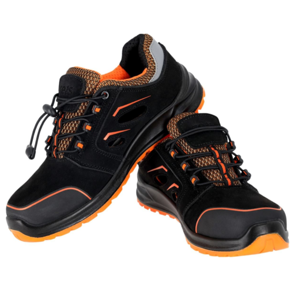 - Podeszwa antypoślizgowa, olejoodporna i antyelektrostatyczna – wykonana z poliuretanu o podwójnej gęstości, gwarantująca bezpieczeństwo na różnych powierzchniach.